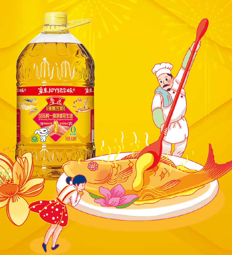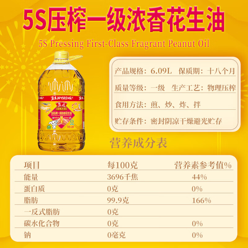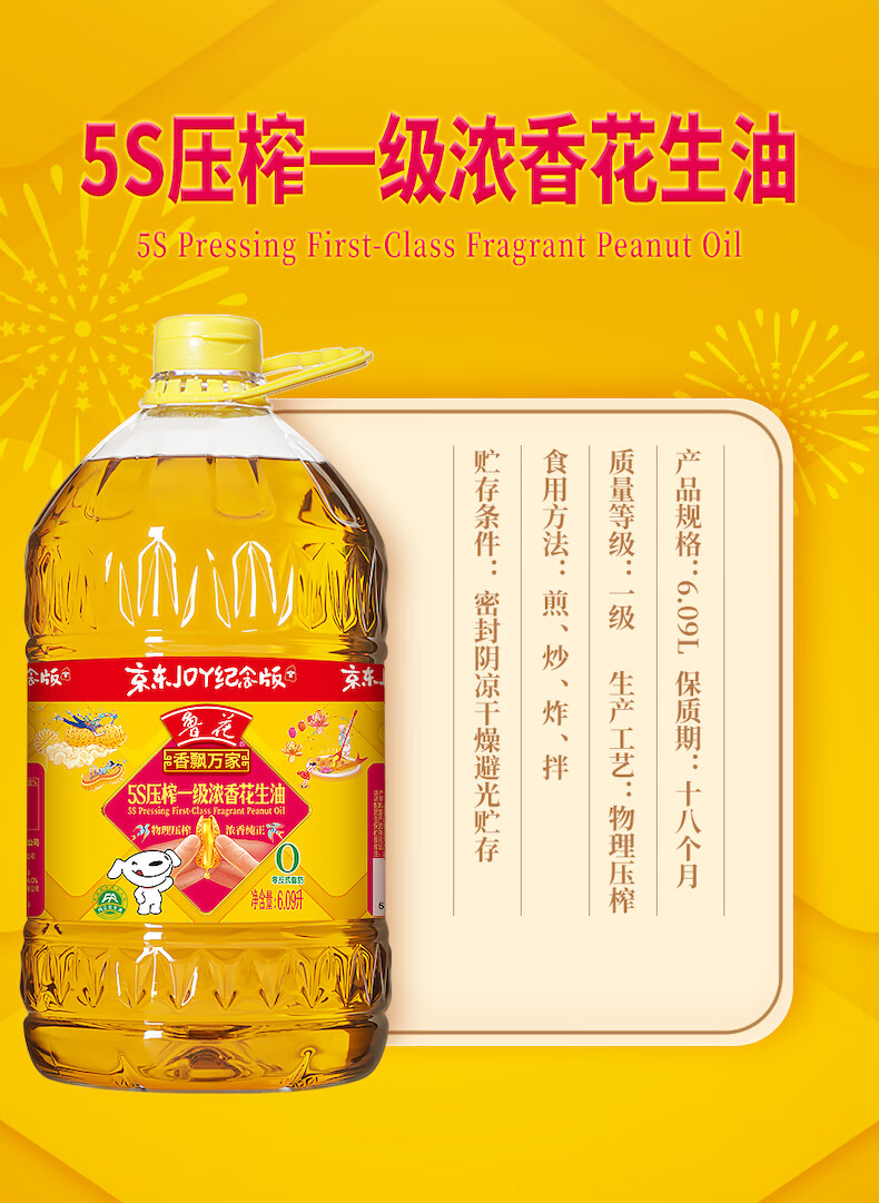 鲁花食用油5S物理压榨一级花生油6.09L