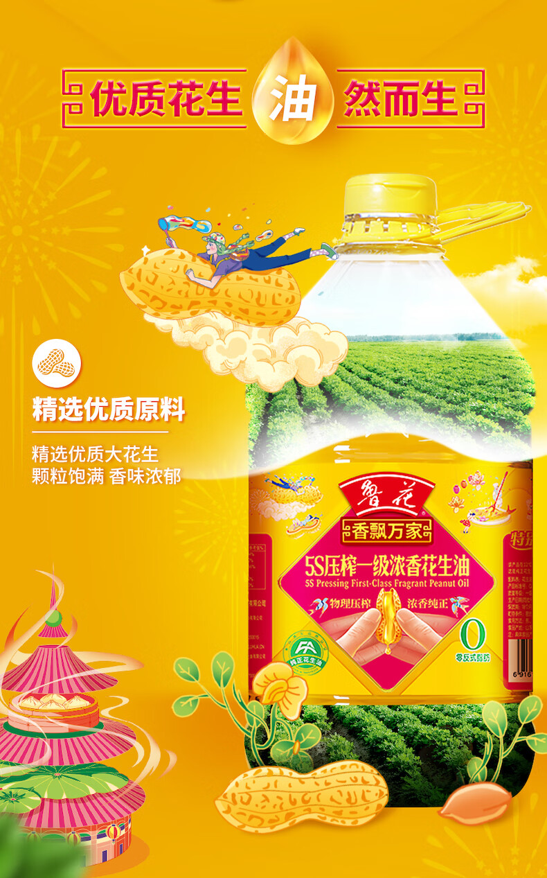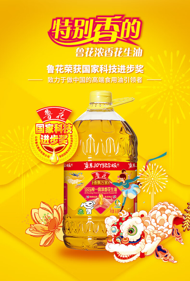 鲁花食用油5S物理压榨一级花生油6.09L