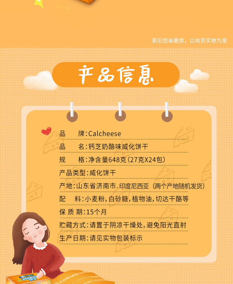 钙芝(Calcheese)奶酪味威化饼干休闲零食早餐食品小吃轻食648克